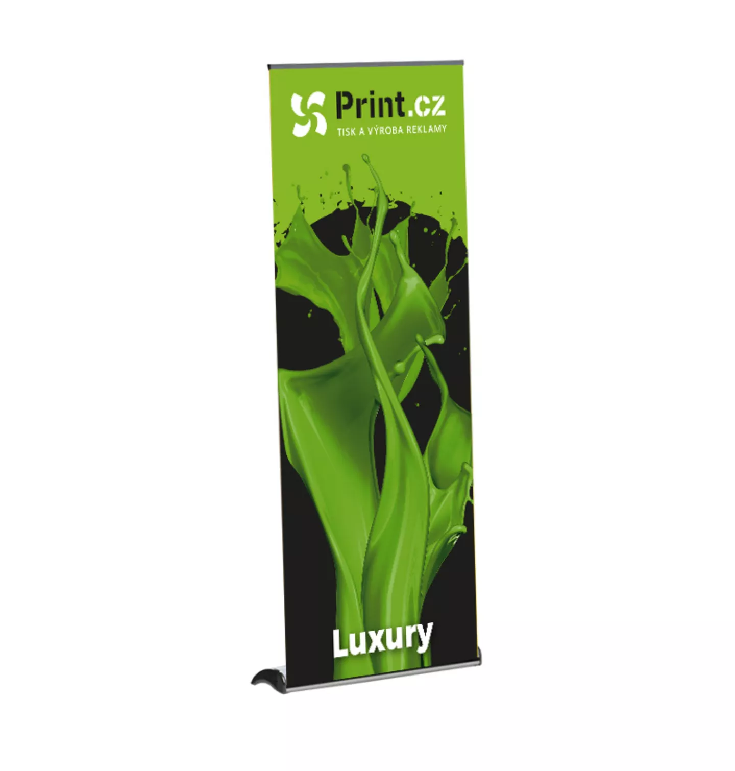 Roll up Luxury je nízkoprofilový jednostranný elegantní banner vhodný pro každodenní použití na výstavách, veletrzích, ale i běžných veřejných místech díky svému vysoce stabilnímu řešení a skvělému zobrazení grafiky. Roll up je stabilní, působí robusně, ale přes to je lehký a snadno použitelný se složením už do dvou minut bez použití nářadí. Grafiku roll up banneru tiskneme na bannerový materiál. Ta se zaklapává do excelentní lišty s chromovanými konci. Tento roll up je navíc dodáván s teleskopickou tyčkou, speciální brašnou s extra výplní, která dobře ochrání strojek při transportu a vy jej tak můžete používat opakovaně.