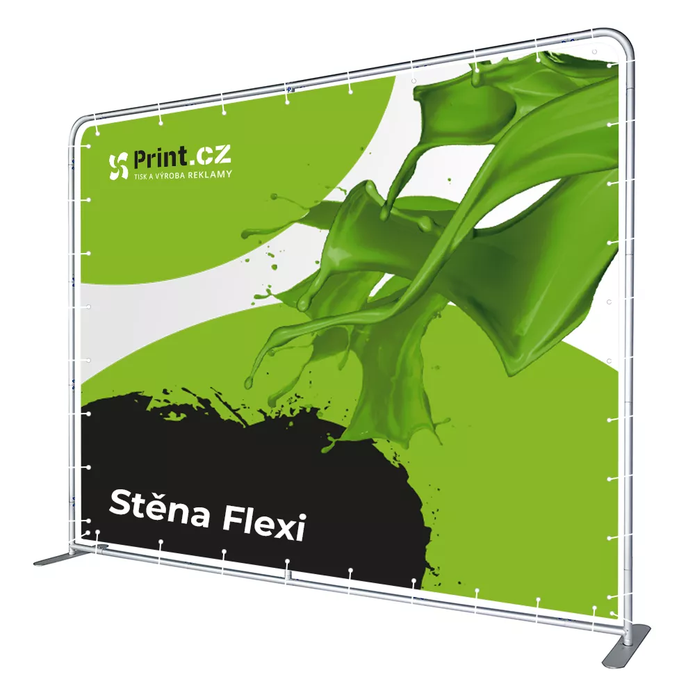 Rovná prezentační bannerová stěna Flexi s grafikou na PVC banneru je ideální pro vaše prezentace a akce. Stěna je vyrobena z kvalitního PVC banner blockout materiálu vyztuženého skelnými vlákny, který zajišťuje vynikající tiskovou kvalitu pro vaši grafiku a nepropustí světlo. Díky lehké, ale současně pevné a odolné konstrukci je stěna snadno přepravitelná a skladovatelná. Skládání této stěny je rychlé a jednoduché, aniž byste potřebovali jakékoliv nářadí. Stačí jen spojit hliníkové trubky a následně na ně upevnit PVC tisk, který se jednoduše a pevně připevní pomocí gumolanek s kuličkou. Lze dokoupit světla, které máme v naší nabídce.