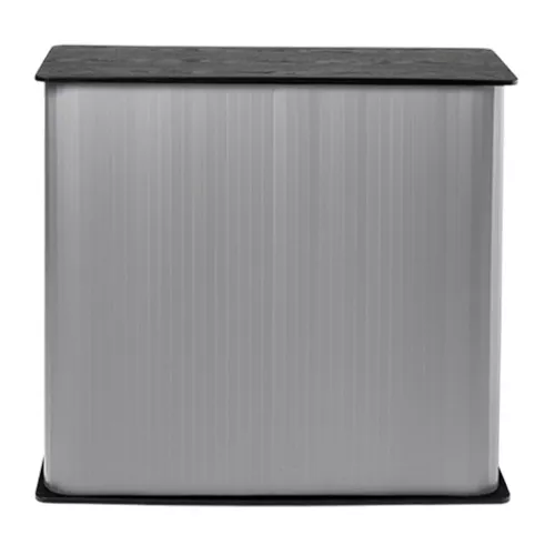 Hranatý prezentační stolek s úložným prostorem. Bez potisku.